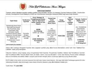 Sebutharga Kerja-Kerja Membekal Dan Menyelenggara Kelengkapan Kebersihanan (Hygiene) Tandas Di Kelab Golf Perkhidmatan Awam Malaysia