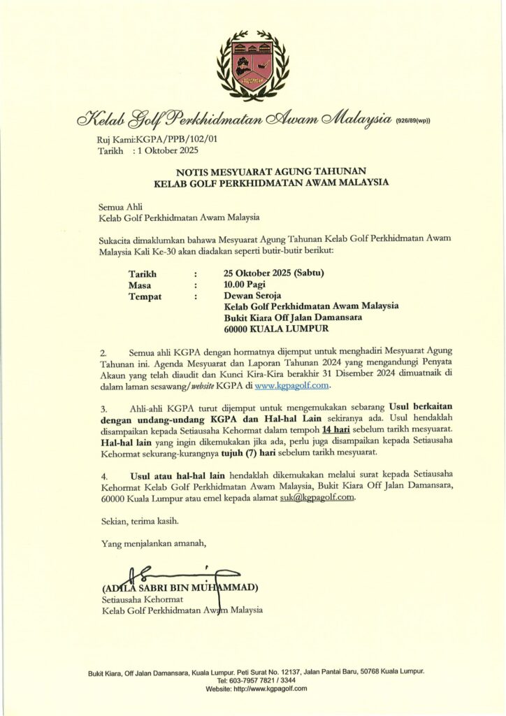 PERLINDUNGAN INSURANS GOLF BAGI TAHUN 2026
